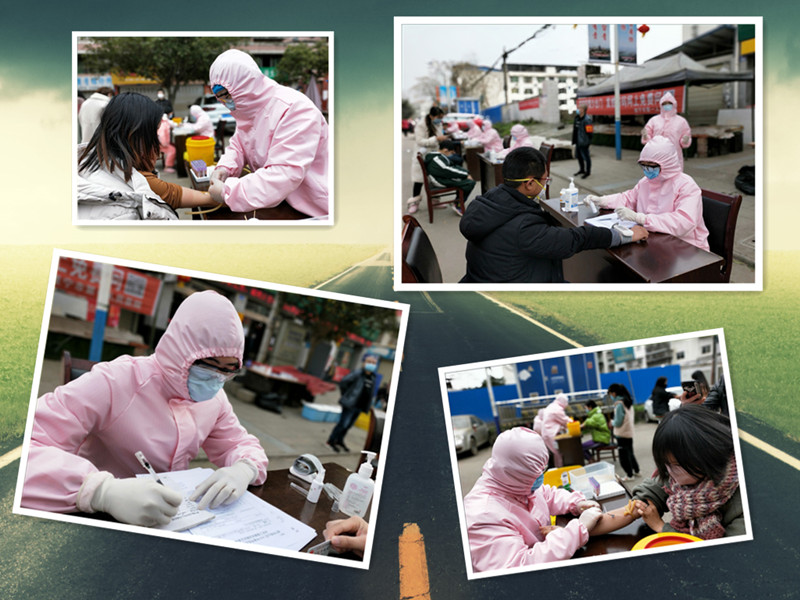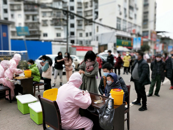 2月14日—15日,经过14天的封闭隔离,银盛楼小区启动解除封闭相关工作,船山区疫情防控应急指挥部和卫健部门组织了19名医务工作者早早的守候在现场,逐个为小区的居民测体温、量血压、检测心率、做心理疏导、抽血查血常规……耐心、专注地为每一名居民进行健康状况综合评估。