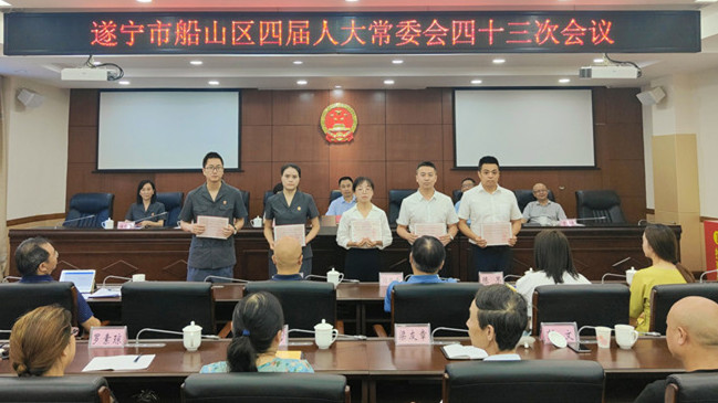 会议审议并通过了《遂宁市船山区监察委员会关于提请景丽娜等5名同志职务任免的议案》《遂宁市船山区人民法院关于提请任命罗彪、刘静两名同志职务的议案》。