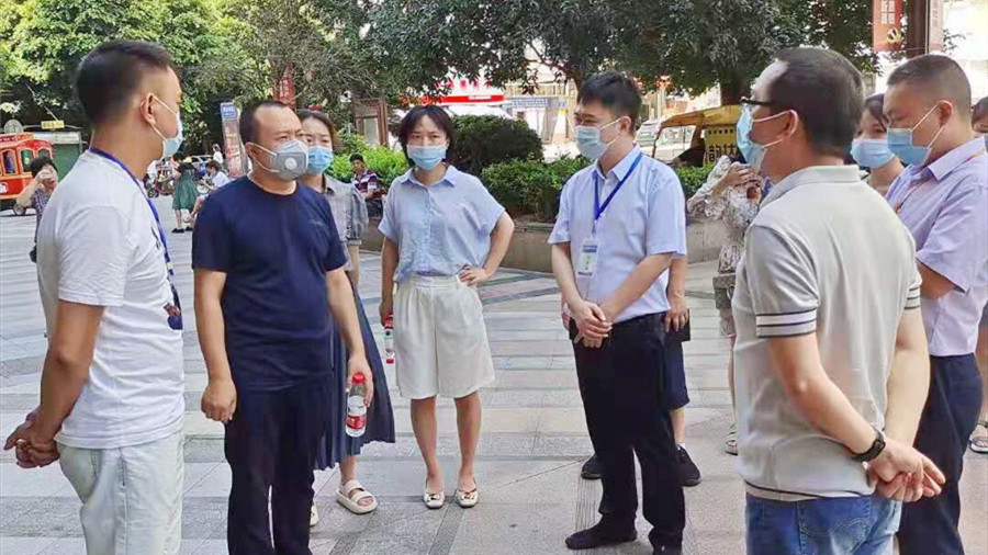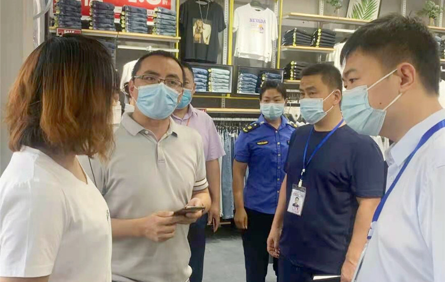 8月1日上午,船山区商务局、区市场监管局、区公安分局,区综合行政执法局、镇江寺街道联合开展疫情防控检查。