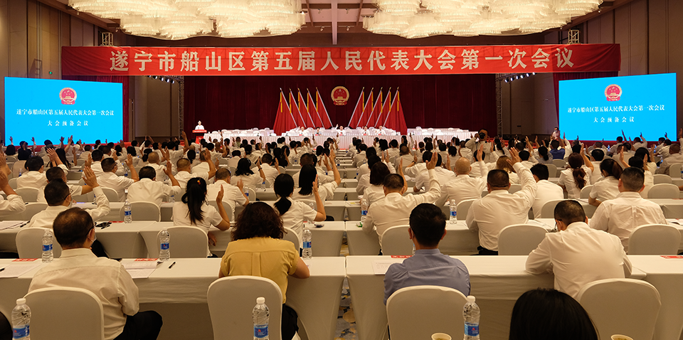 7月27日下午,船山区第五届人民代表大会第一次会议召开大会预备会,表决通过了会议议程(草案)和议案审查委员会名单(草案),选举了大会主席团和秘书长。