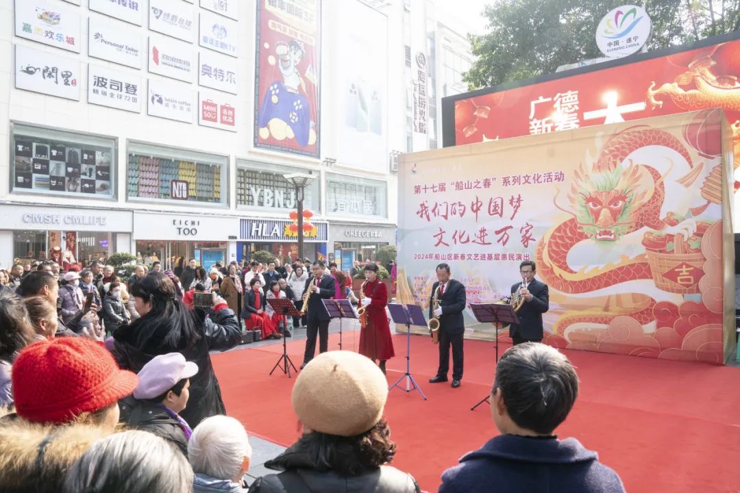据悉,春节期间, 船山聚焦广大游客和城乡居民的需求,精心谋划,分别在中心商业区、荣兴街拾光公园、龙凤古镇举办“我们的中国梦 文化进万家”2024年船山区新春文艺进基层惠民演出、“幸福船山年 欢乐迎新春”2024年船山区新春文艺进基层惠民演出以及2024年船山区“文化进古镇 非遗过大年 ”暨船山区乡村村晚活动,每场90分钟的表演,共计14场活动。