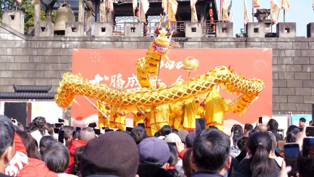 当天,暖阳普照,大地回春。走进龙凤古镇,一派欢腾、喜庆、热闹的景象,2024“龙腾盛世·金龙闹新春”惠民演出正在精彩上演。舞龙表演队伍穿梭于古镇之中,为市民游客送去新春的祝福,引得阵阵喝彩,节日氛围浓厚。