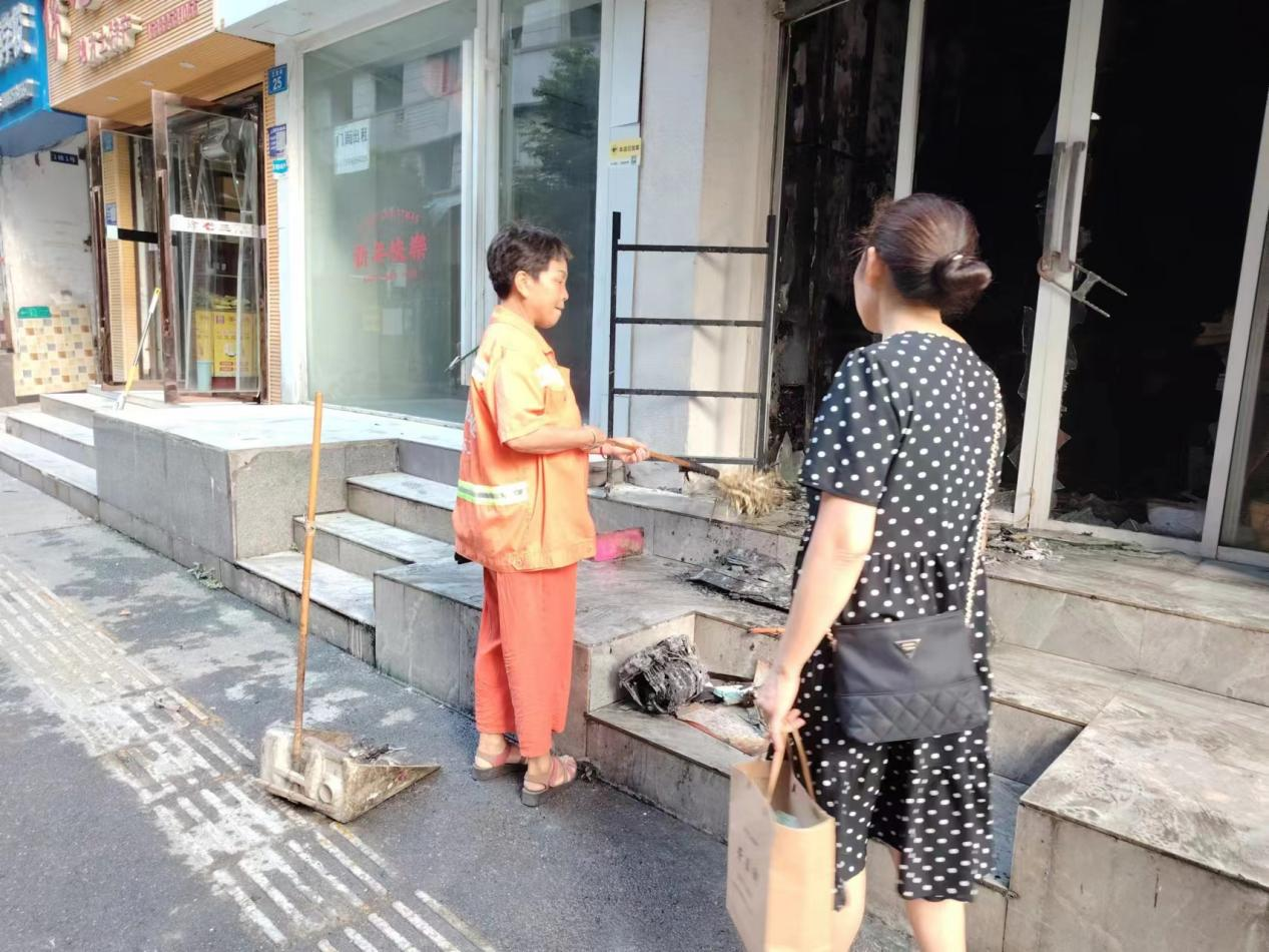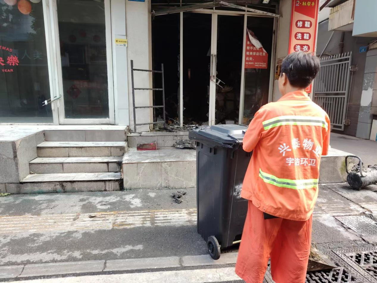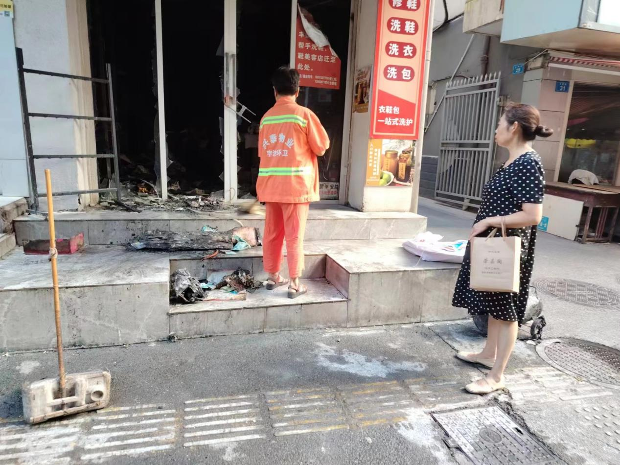 8月15日早晨6点20分左右,遂宁市兴泰物业管理有限责任公司环卫工人在工作时发现船山区玉堂街27号店铺因电线线路问题引起火灾事故,为避免造成更大的财产损失及周边居民人身安全。兴泰物业环卫工人及时拨打了119报警电话,并拨打该店铺负责人电话告知。在火势扑灭后,并确保没有安全隐患后,兴泰物业工作人员还主动帮助清理烧毁的物品。