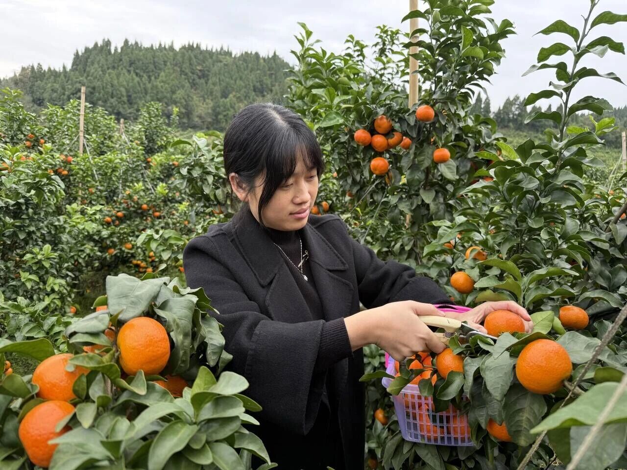 除金秋砂糖橘外,基地还种植了明日见、沃柑、耙耙柑等多个品种,以满足不同市场需求。其中砂糖橘采摘期最长,可从10月中旬持续至12月中旬。除了现场采摘,基地还与本地电商平台合作,实现“当天采摘、当天发货”,产品畅销绵阳、德阳等周边城市,预计今年总产量可达12万公斤。