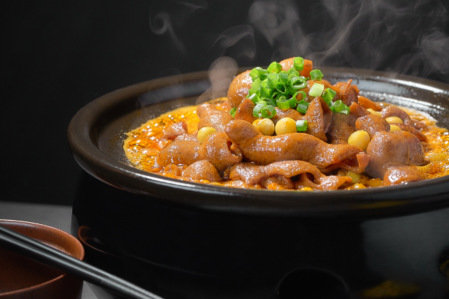 砂锅:陶罐慢炖,锁住食材原汁原味,必点清单:蒜蓉虾仁、黄豆肥肠、野菌包。