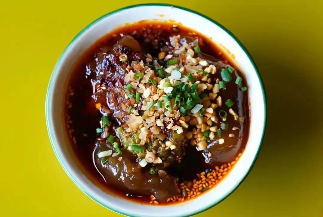 蒲凉粉:凉粉切成条状,裹上独有的烧椒酱、榨菜、红油等搅拌均匀入口,谷物清香伴着调料的咸麻,香辣入味。推荐新市场进行打卡,口感软糯滑嫩,搭配秘制调料,味道鲜香浓郁让人食欲大开、念念不忘~
