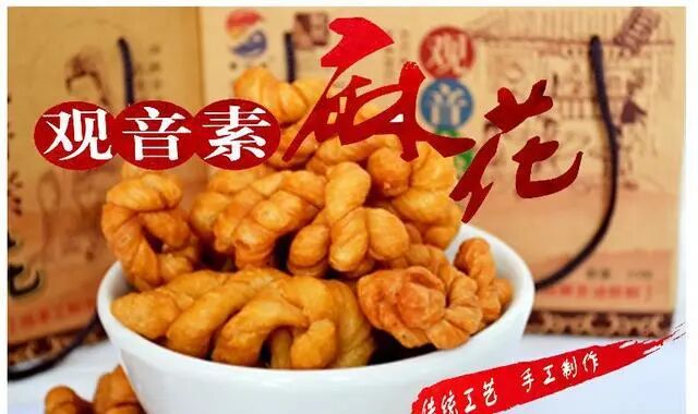 观音素麻花:23道古法工艺制成,麻花金黄酥脆,甜而不腻,有原味、芝麻、椒盐三种口味。