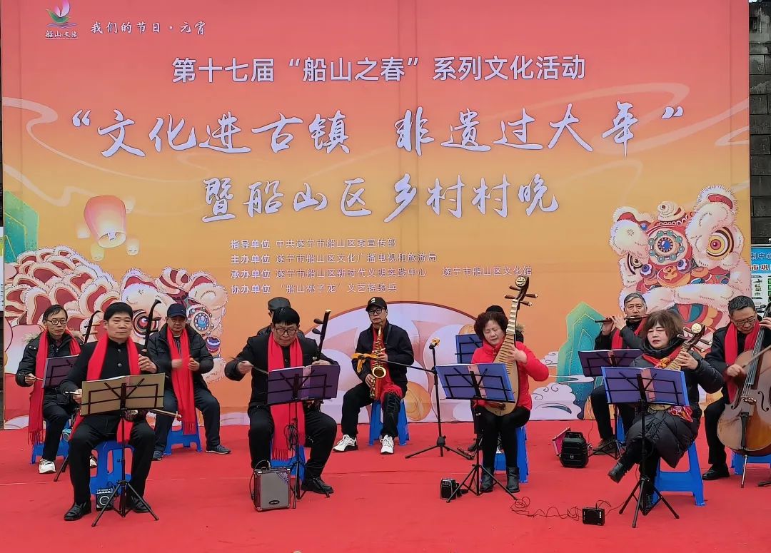 为全面推进乡村文化振兴,丰富乡村文化生活,2月24日,由船山区委宣传部指导,船山区文化广播电视和旅游局主办,船山区新时代文明实践中心、船山区文化馆承办, “船山桃子龙”文艺轻骑兵协办的“我们的节日”系列活动之 “文化进古镇 非遗过大年”暨船山区乡村村晚活动在龙凤古镇热闹举行,与村民们共度元宵佳节,让村民们在家门口享受了一场乡土风味的文艺盛宴,生动呈现了乡村振兴的丰硕成果。