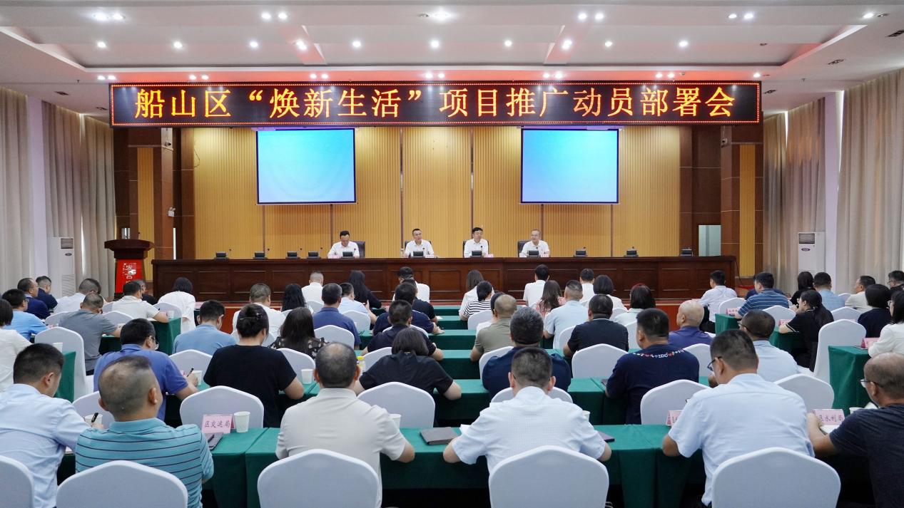 8月28日,船山区“焕新生活”项目推广动员部署会召开。区委副书记、区长陈绍坤主持会议。长江集团党委书记、董事长赵毅,高新区党工委委员、管委会副主任余强,长江集团焕新事业部全国总经理梅雪林出席会议。