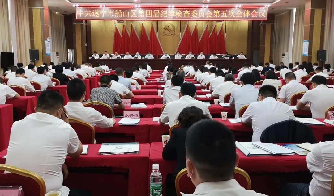 5月9日,中国共产党遂宁市船山区第四届纪律检查委员会第五次全体会议举行,区委书记曹斌出席会议并讲话。他强调,要坚持以习近平新时代中国特色社会主义思想为指导,坚决贯彻新时代党的建设总要求,认真落实管党治党根本政治责任,把“严”的主基调贯穿管党治党全过程,一以贯之、坚定不移全面从严治党,一体推进不敢腐、不能腐、不想腐,持续巩固风清气正良好政治生态,为决胜全面小康、决战脱贫攻坚提供坚强保障。区委副书记、区长韩麟出席并传达十九届中央纪委四次全会、省纪委十一届四次全会和市纪委七届五次全会精神。区人大常委会主任蒲体德,区政协党组书记、主席提名人选易志昂,区委副书记袁旭出席会议。