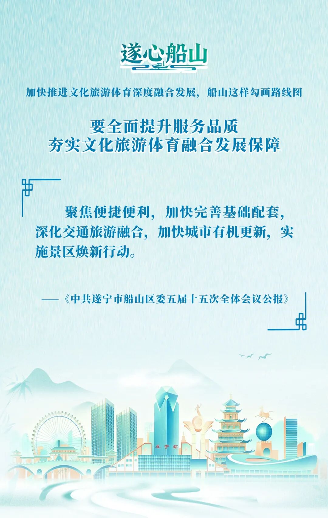 中国共产党遂宁市船山区第五届委员会第十五次全体会议,于2025年11月14日在船山区举行。全会对筑牢引客入遂“主阵地”、加快推进文化旅游体育深度融合发展作出了部署。