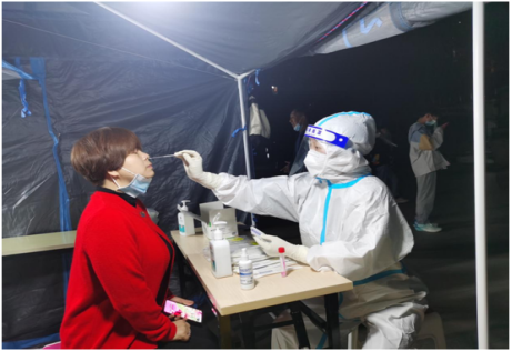 在我区开展大规模核酸采集期间,医院全体干部职工,深入“三区”开展核酸采集,本着“应检尽检、不漏一户、不落一人”的总体原则,发挥不怕苦、不怕累、连续作战精神,用行动彰显“四院”战斗力量。
