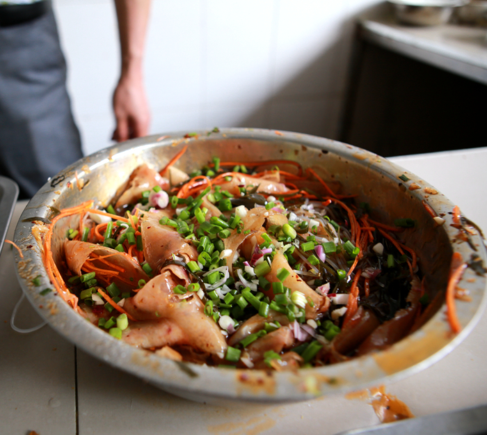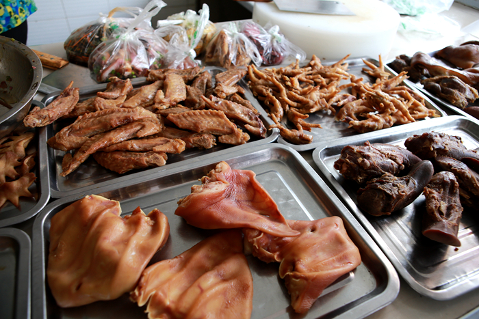 英雄牌卤肉位于保升乡保升街91号,店里的卤菜颜色虽然看起来不像外面那样的红油鲜亮,但是都是实实在在用老卤水腌制而成,不加任何化学色料因素。店内最有名的是水烧腊,老板的资格片肉功底和绝佳的调味手艺,买上个10块钱都有一大盘肉和素菜,安逸巴适,这也就是为什么这家卤肉店连个招牌都没做但是生意这么好的原因了。