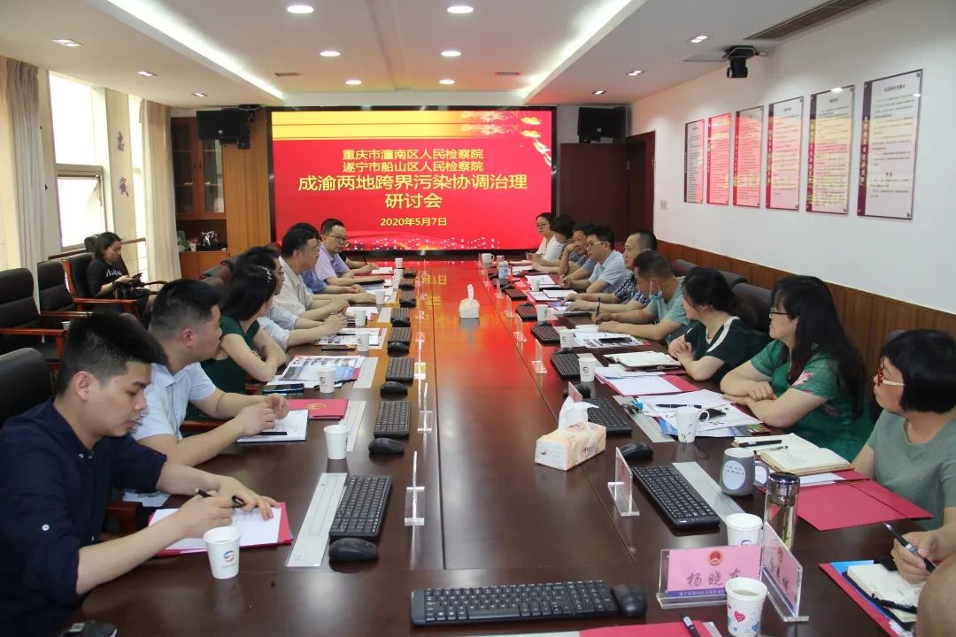 为助力成渝地区双城经济圈建设,落实遂宁市检察院与重庆市潼南区检察院签订的《护航遂潼一体化发展检察合作协议》,日前,重庆市潼南区检察院检察长刘瑜带队到遂宁市船山区检察院参观交流,双方就成渝两地跨界污染案件协同办理相关工作进行了对接研讨。