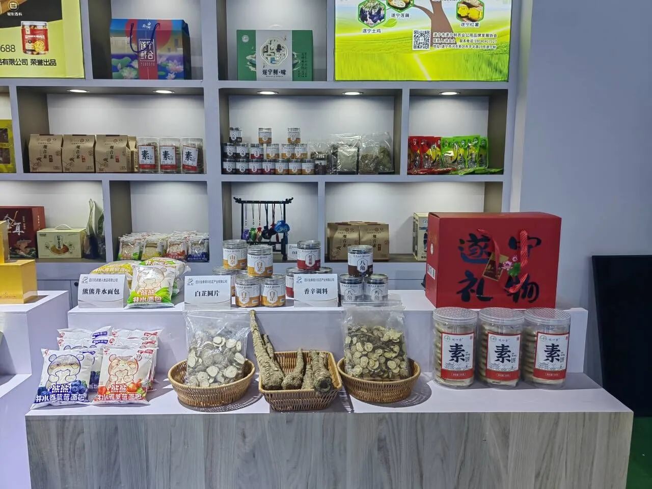 在本届西博会上,船山邀请了多家企业参展,这些企业带来了丰富的特色产品,涵盖了食品、饮品、文创、中药材等多个领域。其中,四川鲜又来农业有限公司带来了观音素麻花、酥豌豆饼、姜糕、徐老三软豆干等当地特色小吃;四川孔府唐人食品有限公司则展出了备受欢迎的熊熊井水面包;四川圣莲花文化艺术有限公司带来了圣莲花茶和以莲花为主题的文创产品;船山区金楠溪木艺工作室则展示了由金丝楠木制作的精美的文创艺术品;四川全泰堂川白芷产业有限公司带来的白芷个子、白芷圆片、白芷香囊以及各种香辛调料,展现了船山区在中药材产业发展方面的成果。船山区企业带来的这些特色产品,不仅展现了船山区的产业特色和发展优势,也为西博会增添了一道亮丽的风景线。