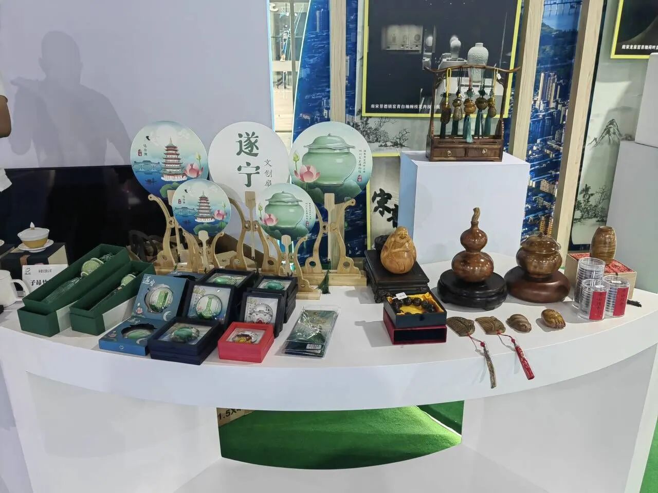 此次西博会,遂宁馆位于中国西部国际博览城3号馆(成渝地区双城经济圈建设馆)N303展位,展位面积1200平方米,以“一壶舍得酒 半城观音湖”为主题,重点聚焦锂电新能源、食品饮料、油气化工、电子信息、装备制造五大主导产业,设置了电子信息、锂电新能源、数字经济和未来经济、食品饮料、文体旅产业等展区,并以“遂宁造”“遂宁鲜”展示展销,突出优势企业和优质产品,直观地展现了遂宁的城市风貌和发展成就。
