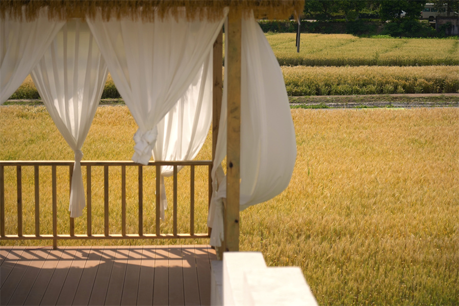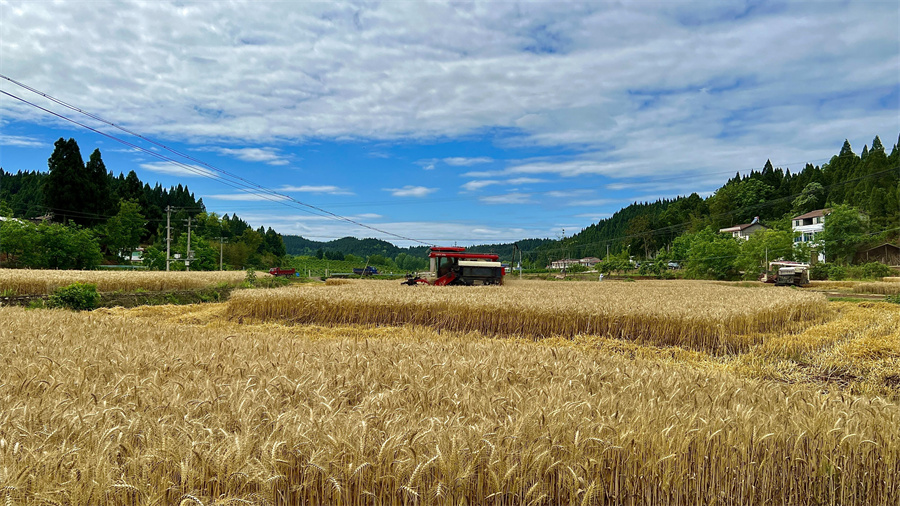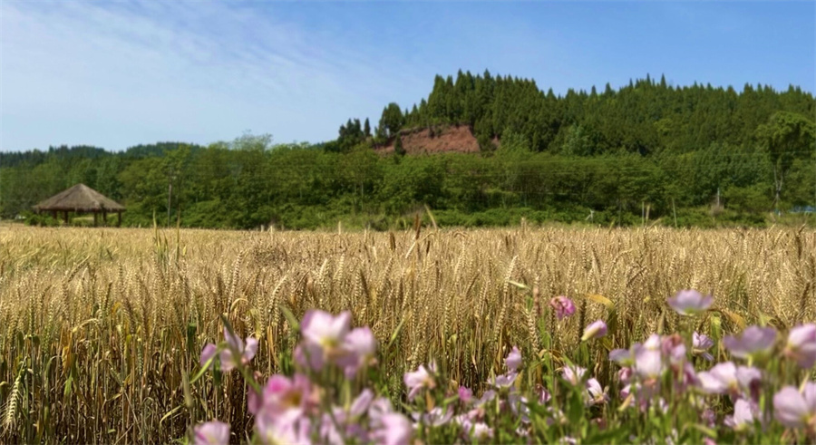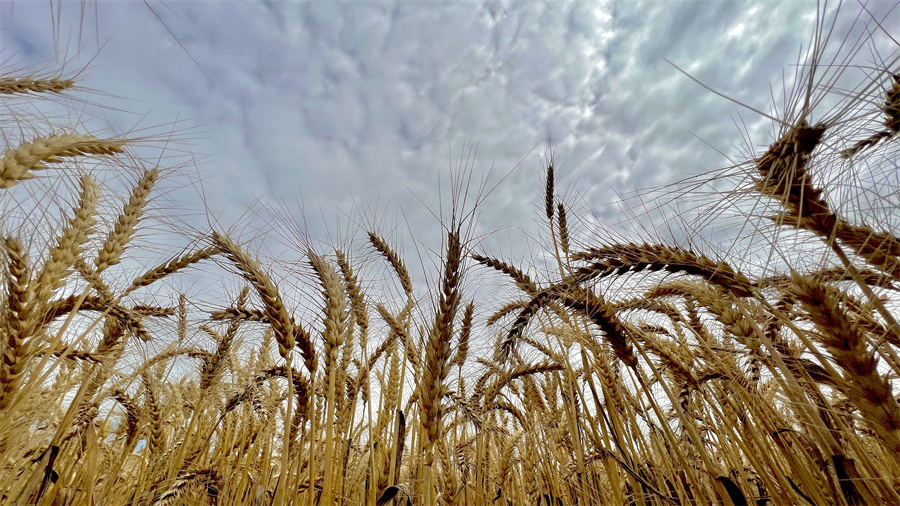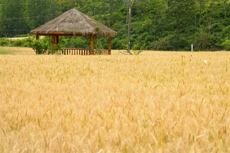 受过了阳光和雨水洗礼后的麦子泛着金闪闪的光,