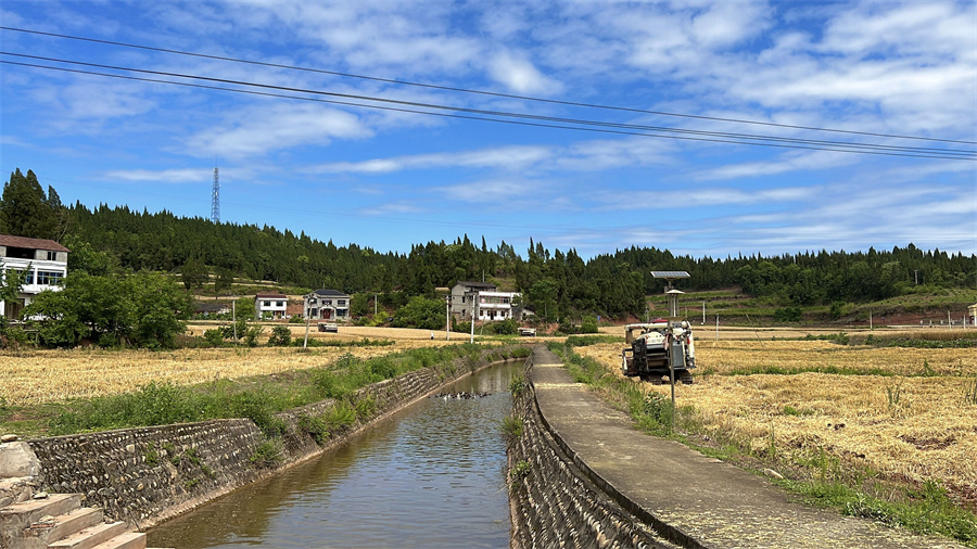 五月的风热吻着2300亩的麦田,形成一波波麦浪,沙沙作响。