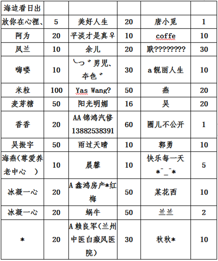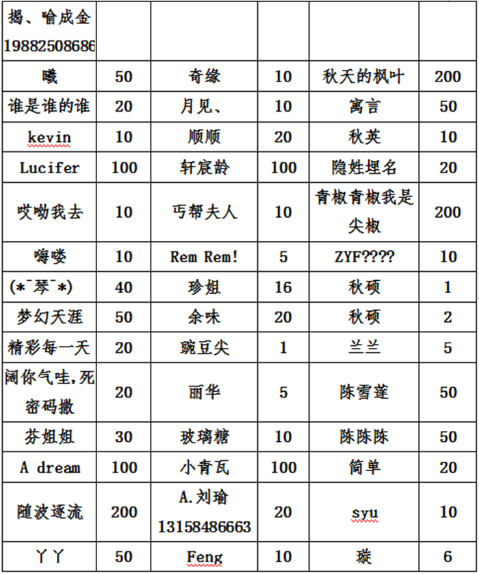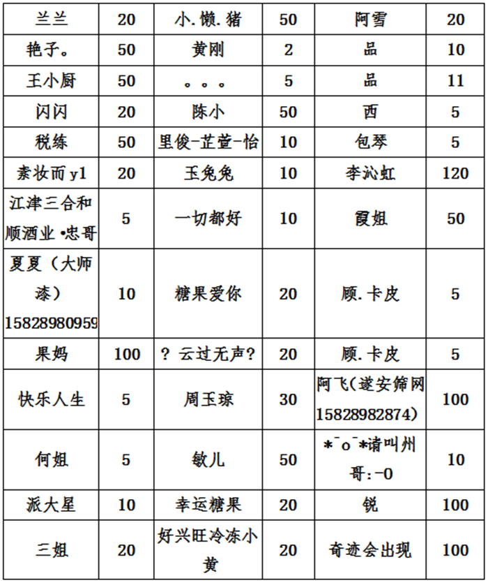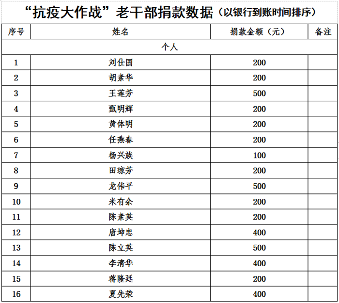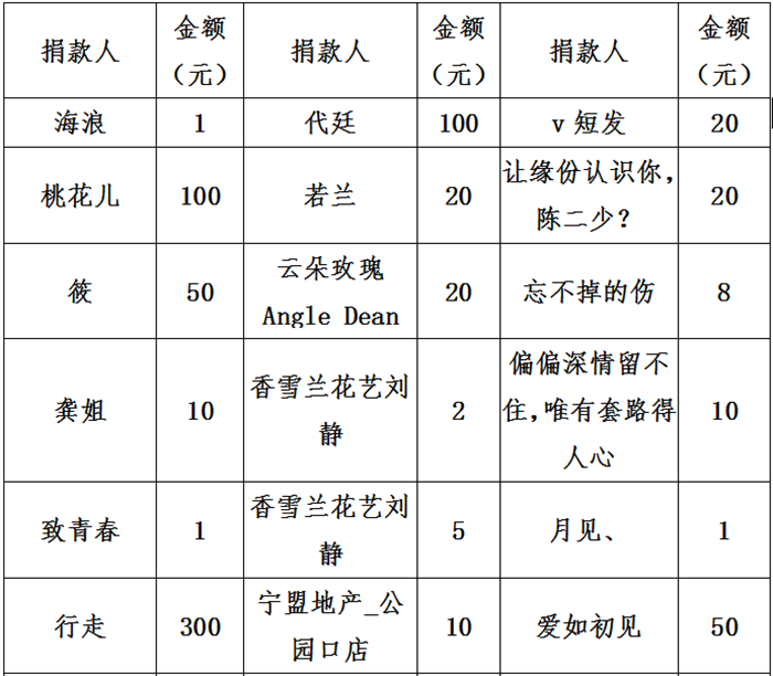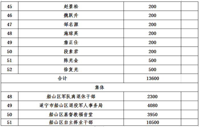 自新冠肺炎疫情发生以来,遂宁市船山区慈善总会在船山区委、区政府正确领导下,依据《中华人民共和国慈善法》,全力做好此次疫情防控的社会捐赠工作。按照《民政部关于动员慈善力量依法有序参与新型冠状病毒感染的肺炎疫情防控工作的公告》(民政部公告第476号)的要求,现将由船山区慈善会、共青团船山区委、船山区融媒体、船山区文明办等10家单位,联合开发的“抗疫大作战”小程序2月6日—3月20日接收的捐赠资金共99164.05元,明细公示如下: