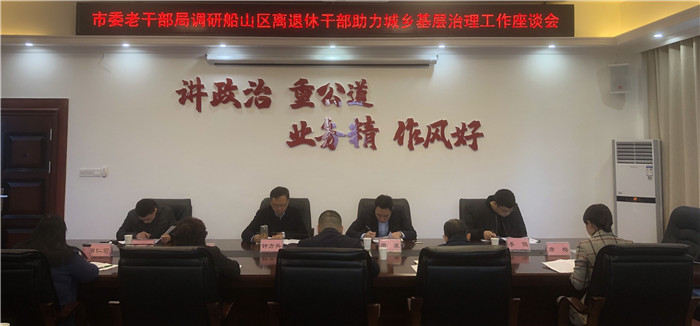 座谈会上,钟方兵指出,船山区要深刻认识到依托社区加强离退休干部党建工作、支持“五老”在城乡基层治理中发挥作用的重要性。要进一步深化“党建引领+助力城乡基层治理”工作,把离退休干部党建与支持“五老”助力城乡基层治理相结合,充分发挥离退休干部党组织的战斗堡垒作用,充分发挥离退休干部党员的示范作用,带动更多的老同志和群众参与到城乡基层治理中来。要加强对社区离退休干部工作的指导和支持,帮助社区解决离退休干部工作中的实际困难,推动社区更好的服务离退休干部,更好的组织引导离退休干部在城乡基层治理工作中发挥好作用。