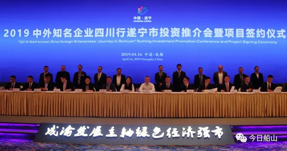 4月16日,“2019中外知名企业四川行”遂宁市投资推介会暨项目签约仪式在成都举行。船山区委副书记、区长韩麟,副区长廖锦标率队参加会议。