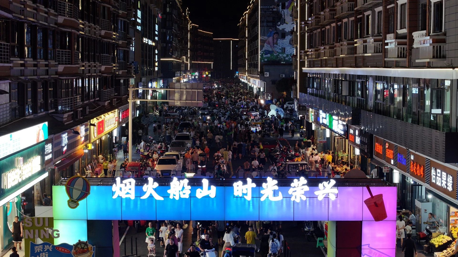 (夜幕下的荣兴街航拍图 苏杰摄影)