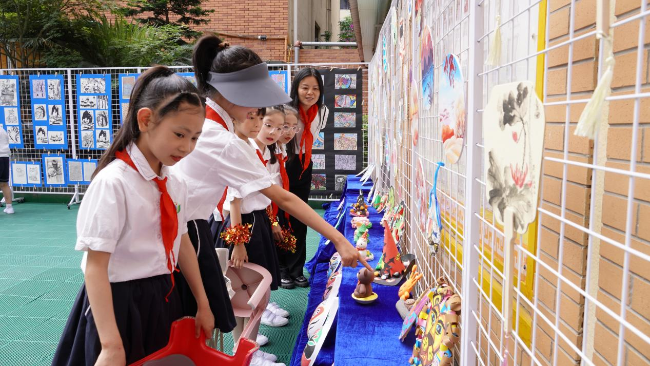舞台下,顺小美术作品展展出了学生们的优秀作品,展示了学校课后服务成果。