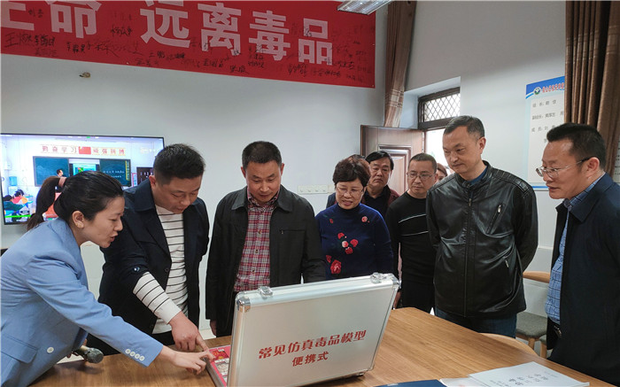视察组一行先后来到桂花学校、桂花镇社区戒毒康复工作站,实地察看了学校禁毒教育宣传展板、禁毒主题微课堂和学生作品展等文化建设成果。视察组通过看现场、听介绍、查阅资料,详细了解了桂花镇禁毒工作“12345”五步工作法。视察中,视察组对桂花镇创新开展社区戒毒康复工作和桂花学校多形式开展校园禁毒宣传教育活动,为学生传递正能量,引导学生树立正确的人生观、价值观的做法给予了高度评价。