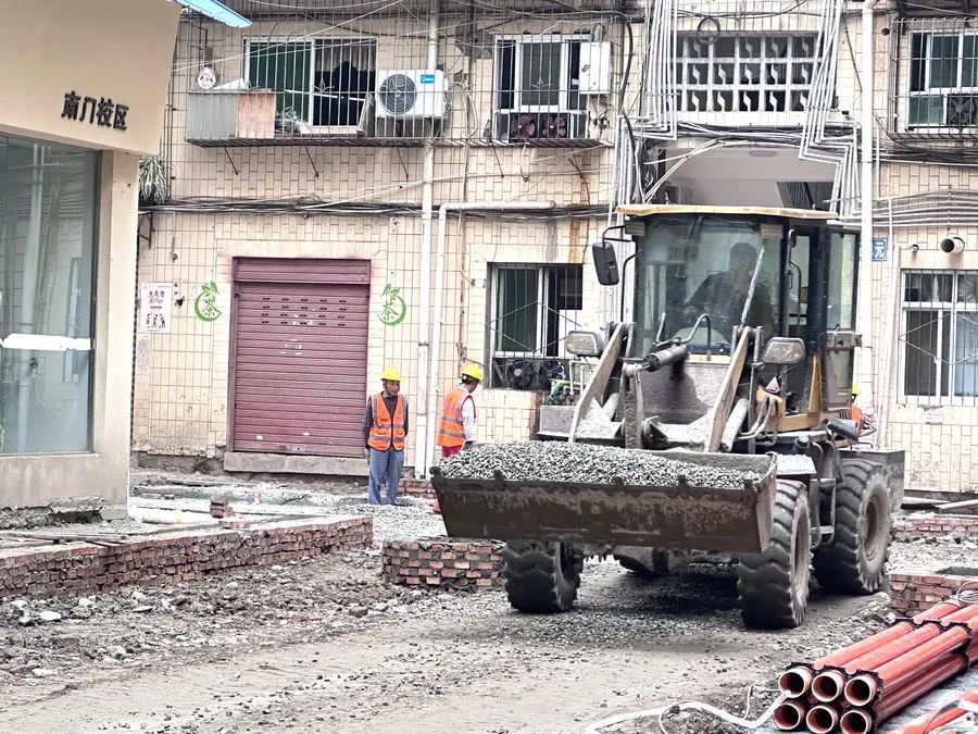 近日,在船山区南津路街道玉泉街社区丽阳花园老旧小区项目改造现场,工人和大型机械相互配合进行道路路面施工。据了解,丽阳花园属于典型的老旧小区,路面破损、排污管道淤积堵塞等问题日渐凸显,不仅有安全隐患,还严重影响了居民的生活品质。今年该小区被列为船山区老旧小区改造项目工程,于今年8月开工建设,通过对小区楼道墙面、人行道、雨污管网、消防设施等进行改建或更换,切实改善居民居住环境。