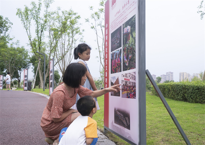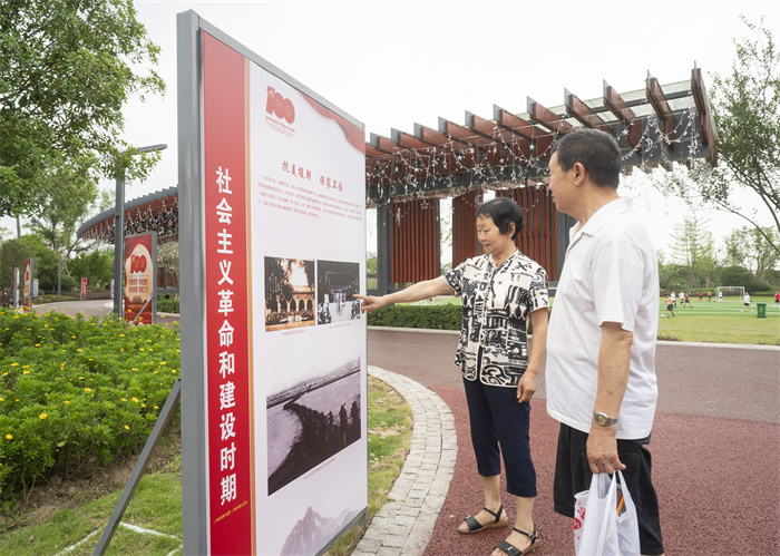 百年征程波澜壮阔,百年初心历久弥坚。为庆祝中国共产党成立100周年,展现中国共产党走过的光辉历程,歌颂党带领人民所取得的伟大成就,描绘百年来中华民族壮丽的历史画卷,7月1日,“百年征程·壮丽史诗”——遂宁市船山区庆祝中国共产党成立100周年主题成就展在九莲洲湿地公园开展。连日来,不少市民前往九莲洲湿地公园观展“打卡”。