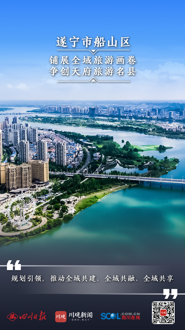 刘红军:下一步,船山将主动融入全省“十四五”旅游发展规划,按照全市文化旅游发展极核区的总体要求,落实“商旅兴区”战略,对标天府旅游名县评定标准,聚焦“一个抓手”、突出“两个重点”、实施“三大工程”、推进“四大建设”,实施文旅融合攻坚行动,加快推进“两岛、一河、一镇”建设,计划用两年时间,培育船山旅游核心IP,成功创建天府旅游名县。