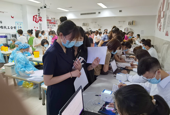 为贯彻落实经济发展和疫情防控“两不误”的要求,船山区商务局联合区卫健局、区疾控中心在遂宁新都工会之家设立疫苗注射临时接种点,于5月18日19时出动20余名医护人员,先后为遂宁新都、苏宁电器共计800余名从业人员开展疫苗上门接种服务。为我区大型商超企业提供便利,避免服务业从业人员因工作时间受限、接种点等候时间较长等原因不能及时接种疫苗的情况发生,为服务业构筑坚固免疫防线,为市民提供安心市场消费环境。