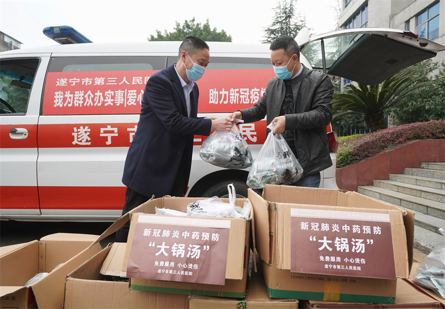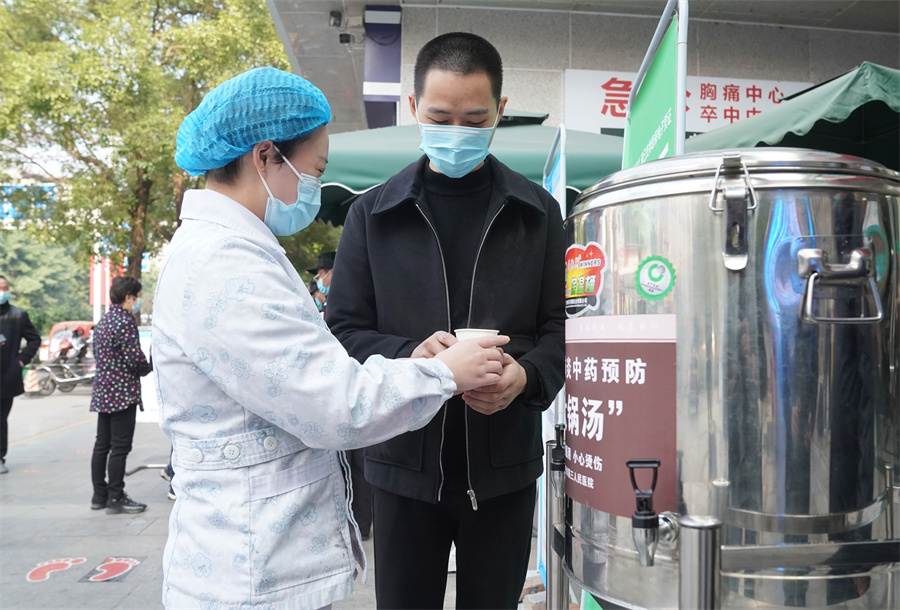 “中药汤剂药味虽苦,但心里却甜着。”记者发现,市第三人民医院还在门诊出入口向医院医务人员和市民群众免费发放新冠肺炎中药预防“大锅汤”,并有医务人员现场耐心细致地为大家讲解服药方法及防疫知识。