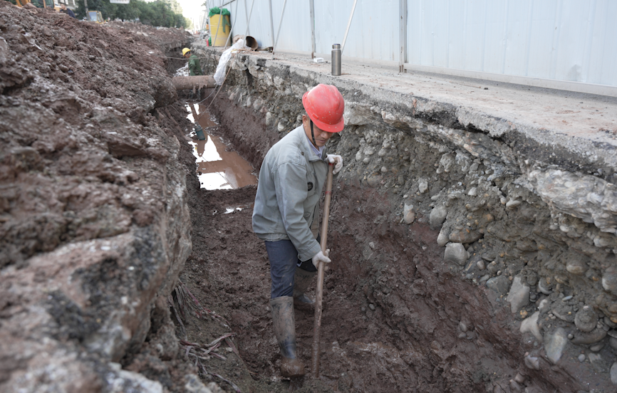 开善路道路及管网改造项目建设内容包括路面拆除、沟槽开挖以及雨水、污水、供水等管线的施工。目前已完成管道开挖、安装、回填工程230米;安装检查井6座;雨水支管开挖、安装、砼包管4组;泵房围护桩26根,冠梁61.4米。完成该路段项目工程量的60%。