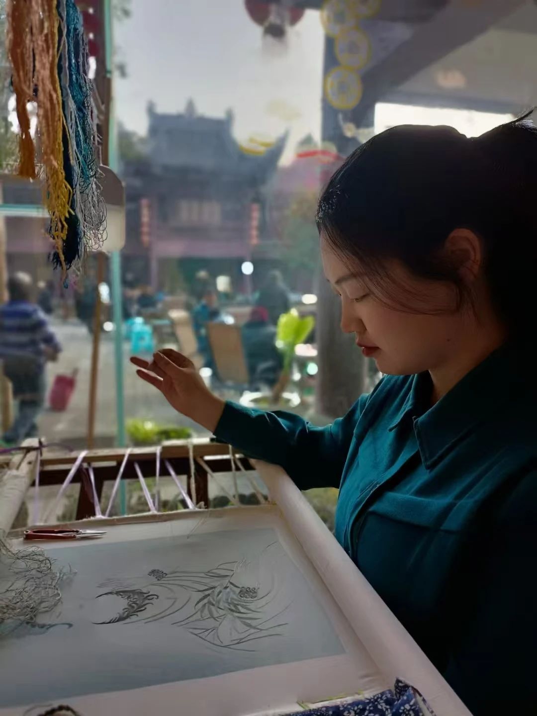 在遂宁市妙善文化艺术坊,蒲彩虹跟随黄海彦和身边绣娘专心学习领悟非遗蜀绣技艺,渐渐,便可娴熟地以针为笔,以线为墨,勾勒出一幅幅完整的蜀绣作品。“如何用一枚枚小小细针绣出大大的产业,让一件件非遗蜀绣作品有故事、有温度、能互动、更有价,而非只靠情怀坚守,是黄海彦老师和我们一直探索突围的要紧事儿。”谈及非遗的传承,蒲彩虹侃侃而谈。不久,她的身份变为遂宁蜀绣“传承大使”。