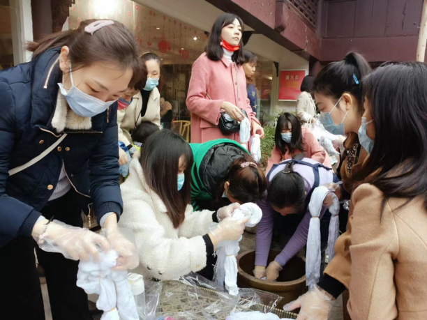 借助西博会、文博会、旅博会等大型活动载体,蒲彩虹对扎染技艺及作品进行广而告之;积极参与创客大赛、创青春等创业比赛进行扎染产业化传承;举办扎染现场体验、扎染进校园、扎染进社区等丰富多彩的活动,让更多的人了解和热爱非遗文化,让传统非遗生根发芽、代代相传。