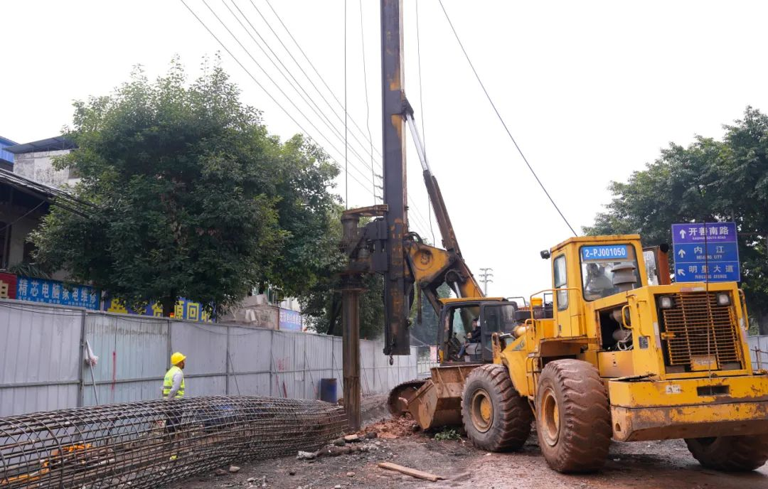 近日,在开善路道路及管网改造项目现场(B段),驾驶员操作旋挖钻机正在进行作业,一旁的工人们头戴安全帽,在各自工位上忙碌。目前该项目正在进行B段雨水管网安装及泵站护桩实施。