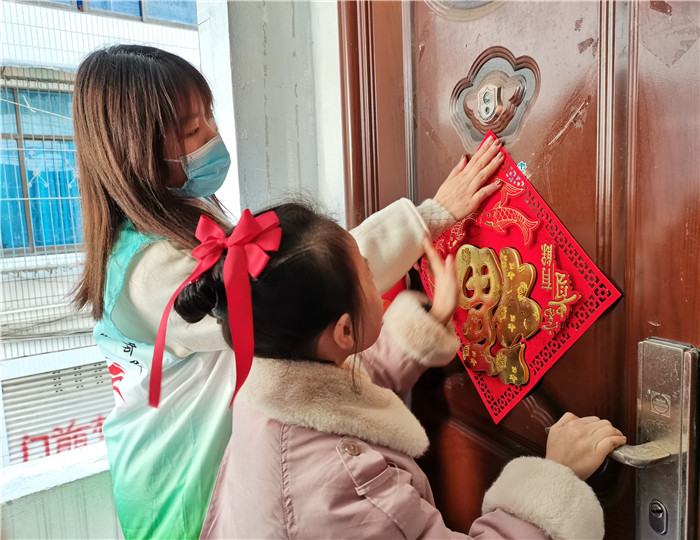 上午九点,21名志愿者在燕山社区“童伴妈妈”和网格员的带领下,三人一组分别到7名留守学生的家中开展志愿服务活动。一起观看市青少年宫云课堂,一起学习手工制作新年台历,一起贴春联、写贺卡,一起打篮球、羽毛球……一起度过了一段欢乐的假期时光。