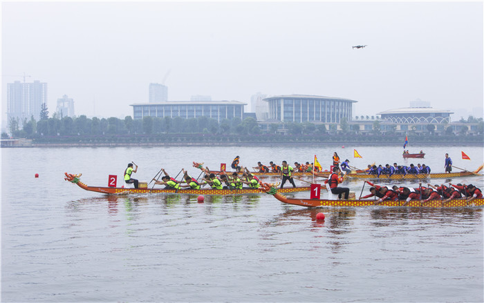 划龙舟是端午节传统习俗,代代相传,生生不息。5月22日,2021年中国龙舟公开赛(四川·遂宁站)开赛!比赛在市城区观音湖临仙阁至市体育中心水域举行。