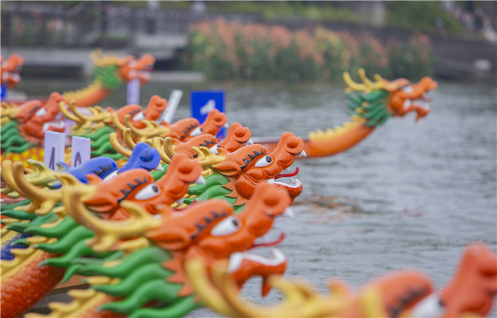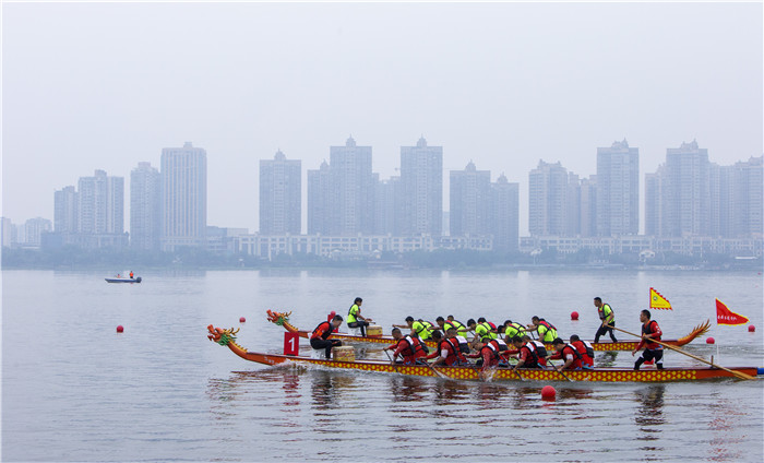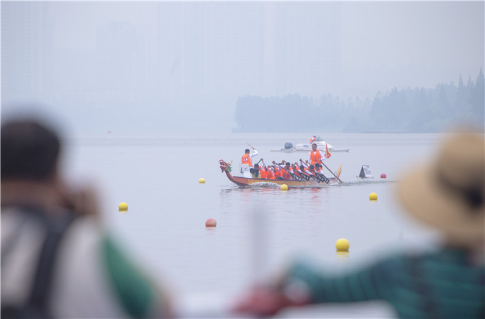 记者在比赛现场看到,市民们对此次龙舟赛热情期待。晴空万里下,远处是碧绿的江水,堤岸边到处都是前来观看龙舟比赛的人群,男女老少,人潮涌动。28支龙舟队准备为观众们献上一场精彩的龙舟盛会。号令一吹响,各龙舟队如离弦之箭向前冲出。激越铿锵的锣鼓声中,桨手们整齐划一地挥动胳膊,奋力划桨,一前倾、一后仰,船尾的“踩艄”时蹲时站,身体不断地完成一个又一个完美的弧线。远远望去,“龙头”随之一起一伏,激起簇簇浪花,一场群龙抢水的好戏博得岸边观众们的连连喝彩。