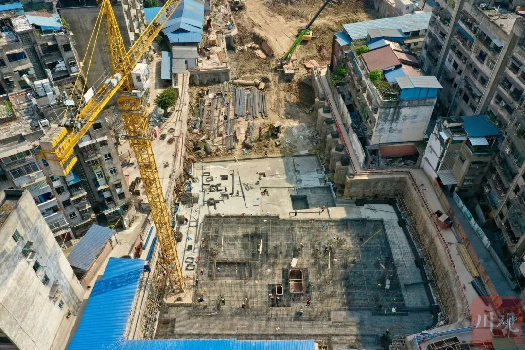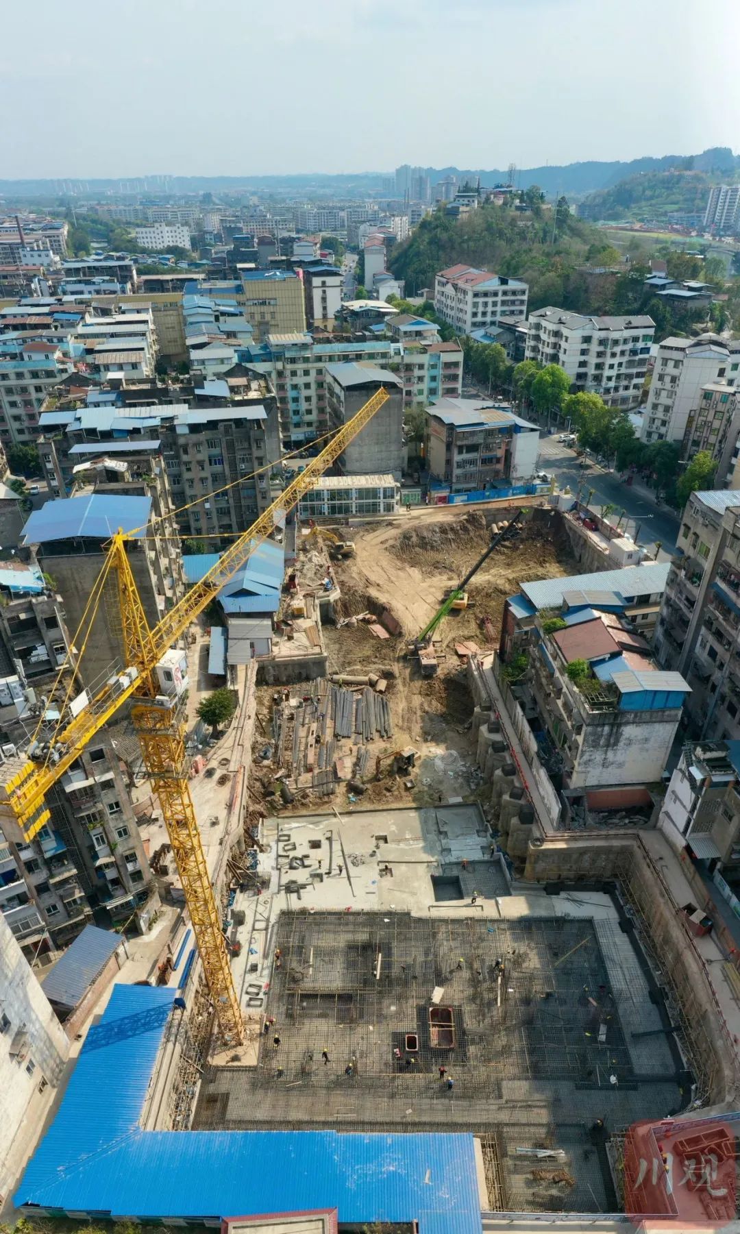 3月29日,走进遂宁船山区南片区城市有机更新项目(开善片区)现场,地下室基础已初具雏形,工人们操控着挖掘机、吊塔等各类大型机械相互配合作业,进行着土方挖运、地下室部分施工作业。