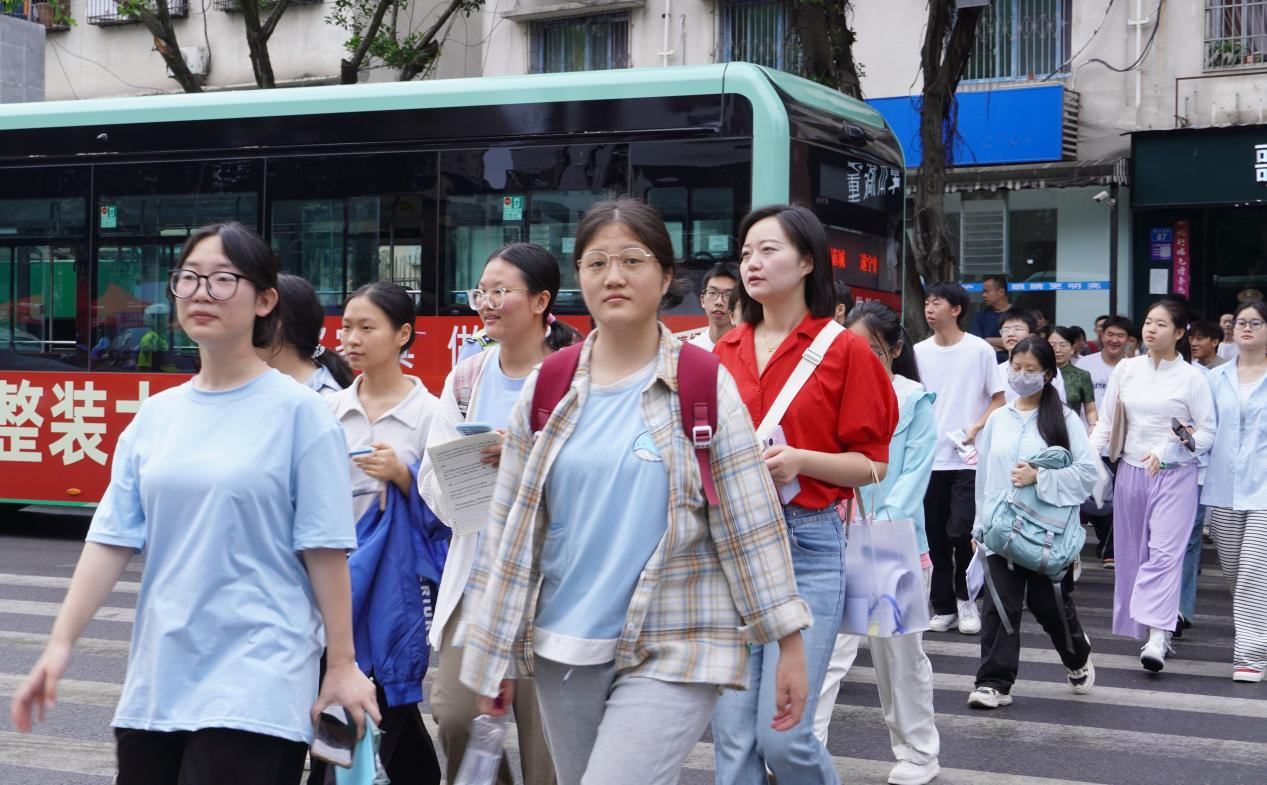 考生们带着自信与从容陆续到达考点,在工作人员的引导下,秩序井然地走进考场。